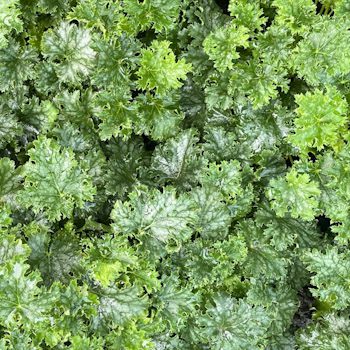 ‘Apple Crisp’ features unique wavy, bright green leaves with a delicate silver-white veining, maintaining a tidy, compact form. Well drained soil. Plant in full to part-shade. 15cm x 30cm.